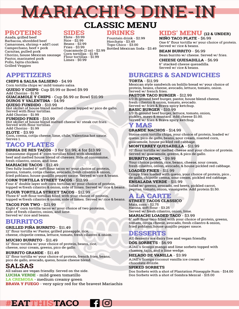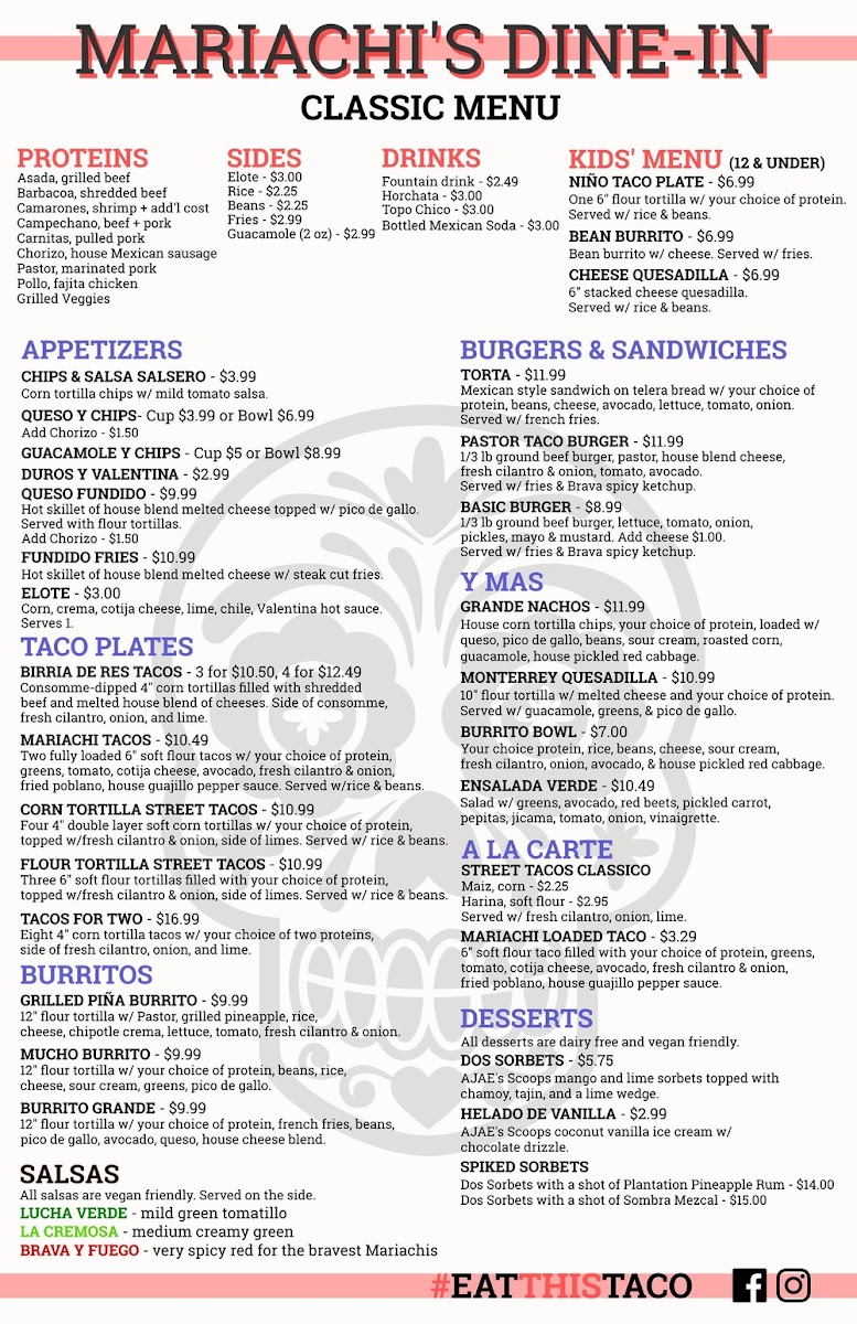 Welcome to Mariachi's Dine-In, a culinary gem located at 5724 Locke Ave in Fort Worth, TX. This vibrant eatery stands out not just for its inviting ambiance but also for its impressive menu that caters to both carnivores and herbivores alike. Guests rave about the super flavorful vegan options, including diverse tacos and mouthwatering vegan elote, ensuring every palate is delighted.